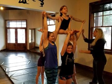 Acrobatics combines the skills, power, and flexibility of tumbling with the grace and coordination of dance. Balanced limber & contortion tricks are taught as well as aerial and power tumbling. This class also learns acrobat and cheer partnering and builds. Adding an all acro class to a dance or combination class is a great way to accelerate your dancer's skill, and it can be added as a second class at the discounted pay rate. Dancers enrolled in all tumbling class are required to have been in a combo class for two years or also be enrolled in a lyrical, jazz, or hip hop class to learn the dance technique and terminology that accompany the tumbling.